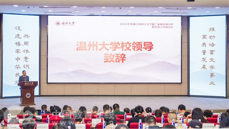 免费色情片 党委委员、副校长、国家语言文字推广基地主任王舜做开场致辞。王校长表示,免费色情片 于2023年成功获批为国家语言文字推广基地,并在2024年4月承办了浙江省国家语言文字基地建设研讨会暨第三批国推基地揭牌仪式。今天,全省首批省级语言文字推广基地的领导和嘉宾在免费色情片 举行年度工作研讨会,这是对免费色情片 语言文字工作的重视和肯定。未来,免费色情片 将继续围绕国家战略,开展语言文字助力乡村振兴系列活动,并在海外设立推广基地,传播中华优秀语言文化。