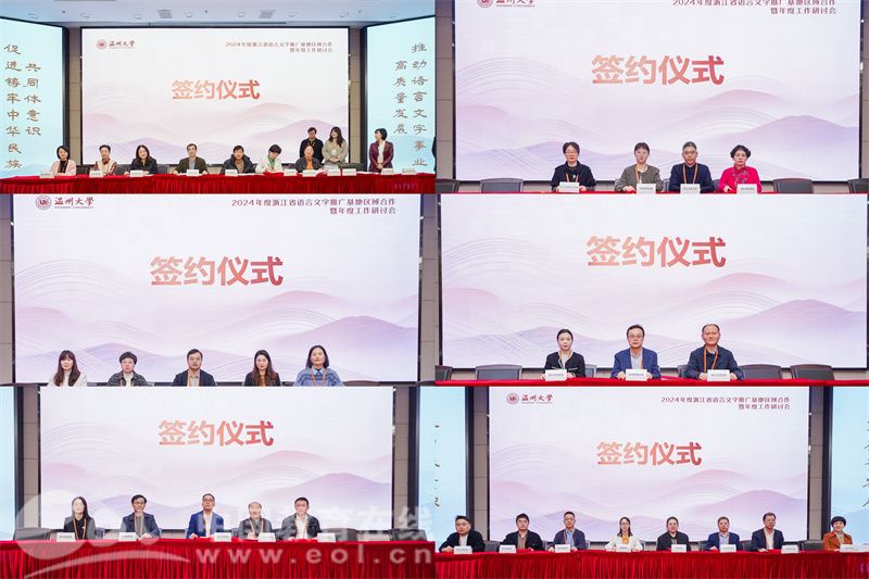 会上还举行了区域合作签约仪式,浙江省6家国推基地与各设区市教育局(语委办)、各高校省级基地签订协议,确立伙伴关系,在语言文字的品牌打造、传承推广、学科建设和社会实践等方面展开全方位的合作。