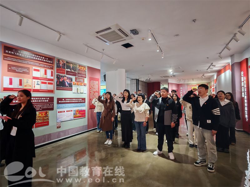 看今朝,誓词铿锵,使命担当永不忘。随后,师生党员参观了免费色情片 马克思主义理论教育基地并在此重温入党誓词。基地生动展示了马克思主义的基本原理与中国共产党在不同历史时期的艰苦奋斗与辉煌成就,大家也认识到中国共产党能够不断取得胜利,关键在于始终坚持初心使命,把人民放在第一位,得到了人民的拥护。