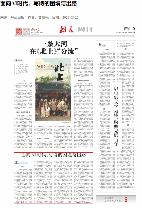 今天,我们需要重审我们的诗歌与艺术观念。我们的诗歌观念,需要把诗歌从作品中解放出来,重新把诗歌放在整个的人类行动世界中去理解。在这个人类行动世界中,历史进程与生命体验,对于诗人和读者都是至关重要的。从具体的一部作品来看,人和人工智能的作品或许难以区分,但把视野扩大成一个“面”,人和人工智能作品的差别就会直观显现出来。