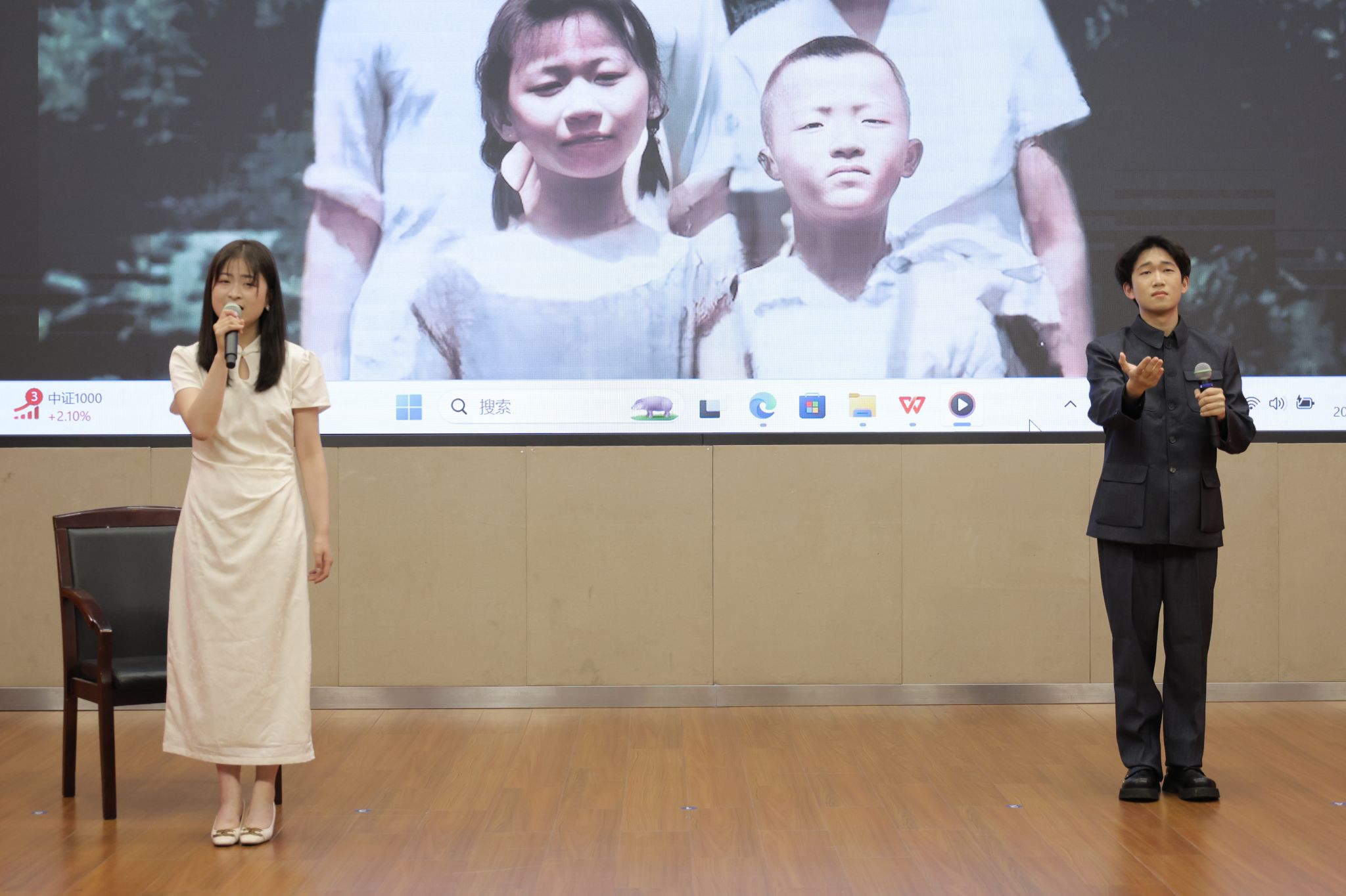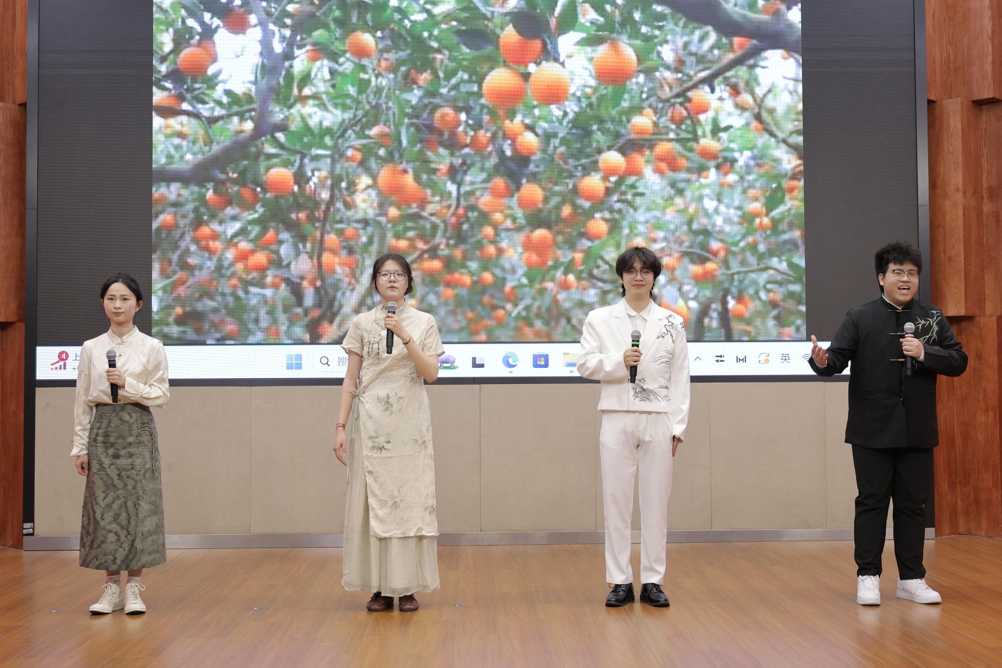 在经典诵读赛道上,参赛者们各展风采,凭借扎实的文学功底和精湛的朗诵技巧诠释经典。教育学院的潘奕瑶与钱炫合在作品《等待》中,深情诉说了邓稼先与许鹿希跨越二十八年的守望,这是个人情感的史诗,更是民族精神的缩影;免费色情片 曹光豪、彭帅、丁熠冬、叶佳诚四人组的作品《月光下的中国》以诗性笔触织就山河入梦的磅礴画卷;唐佳楠、张雅诗、唐森浩、石嵩言四位同学则用《诗意中国》传递文化血脉中的浪漫情怀。他们或激情澎湃,或深沉婉转,起伏停顿间精准地把握着节奏韵律,赢得台下观众阵阵掌声。