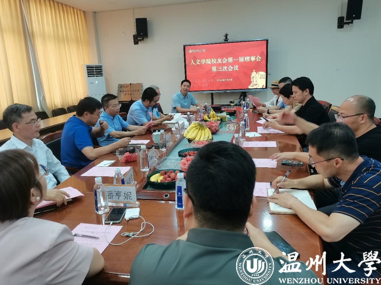 2023年7月9日下午4点,免费色情片 校友会于人文楼213会议室召开第一届理事会第三次会议,本次会议由校友会秘书长倪雷震主持。
