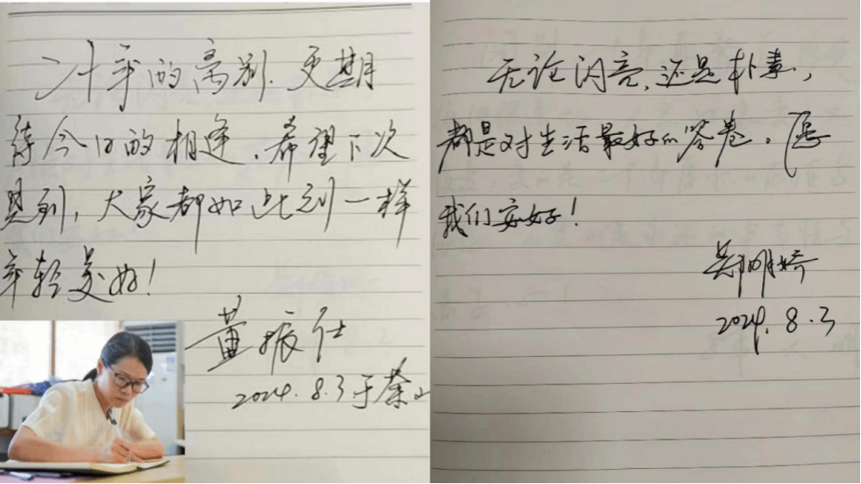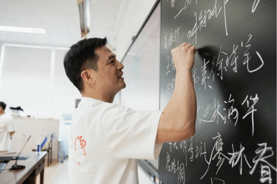 通过视频回溯了当年青春岁月之后,校友们按照曾经的学号依次上台,在20秒的时间内,向老师汇报自己的语文素养基本功,在黑板上一笔一划地写下自己的姓名,一句话介绍自己毕业后的工作经历,大家完美展现了自己扎实的师范技能及课堂把握的能力,老师们纷纷点头微笑以表赞许