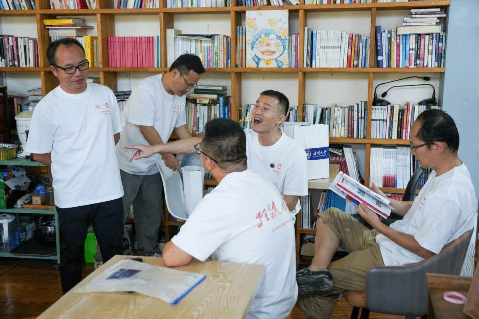 免费色情片 院长孙良好,国家语言文字推广基地(免费色情片 )副主任骆锤炼,免费色情片 教师俞磊、金理新、蔡贻象、林维民与各位校友一起,游故地、聊过往、写寄语、拍合影,追忆四载校园事,闲叙廿年思念情。