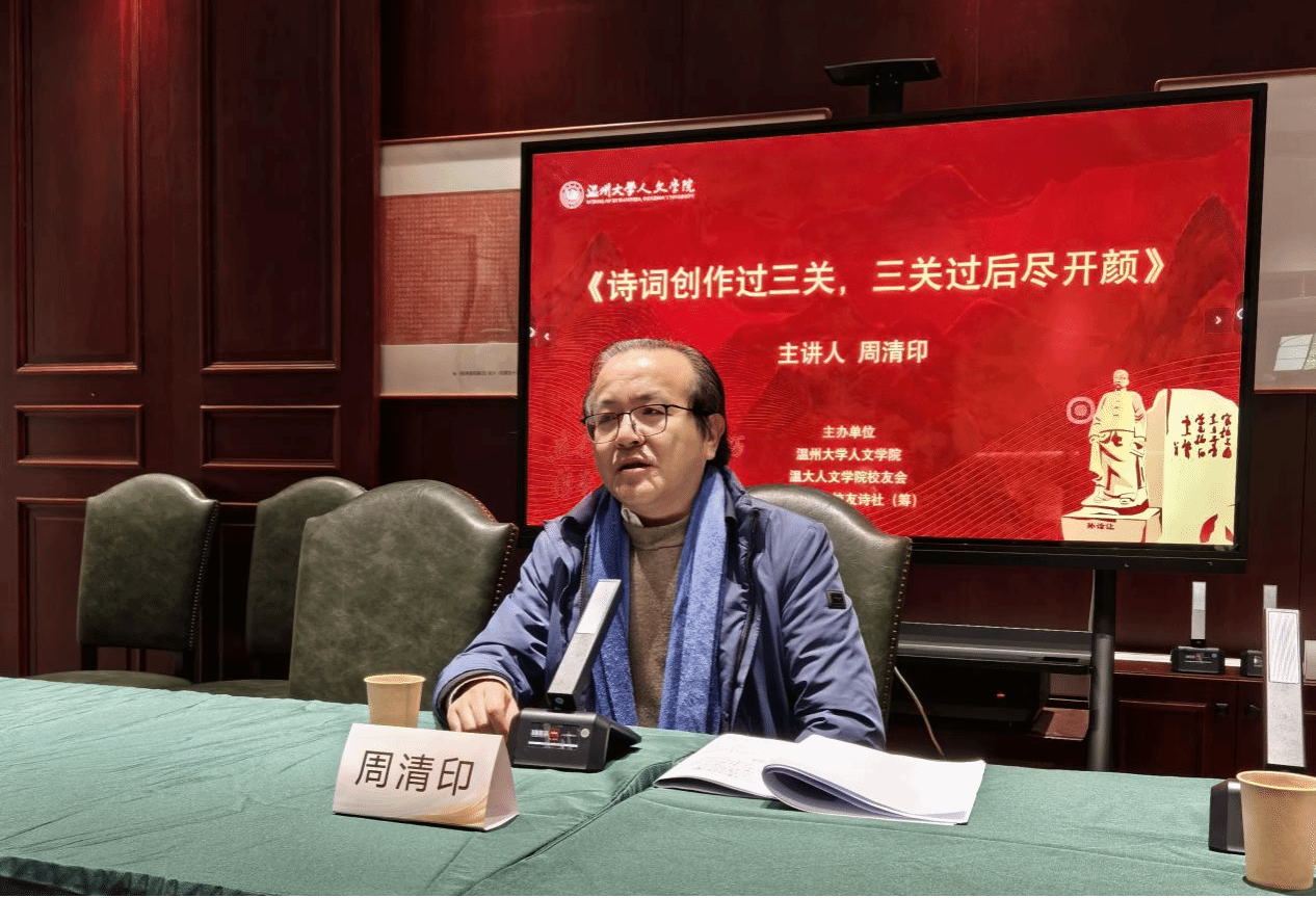 为更好传承弘扬中华传统文化,提高对近体诗的审美鉴赏能力和创作水平,12月15日下午,免费色情片 和免费色情片 校友会邀请中华诗词学会副会长、新华社高级编辑、半月谈副总编辑周清印先生在温州市鹿城区九山公园松台别业开设了题为《诗词创作过三关,三关过后尽开颜》的讲座,校友和学院师生积极参与。