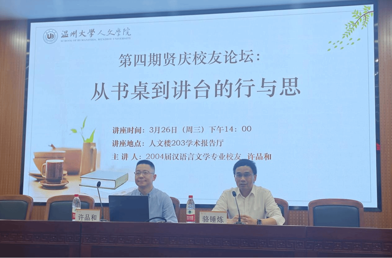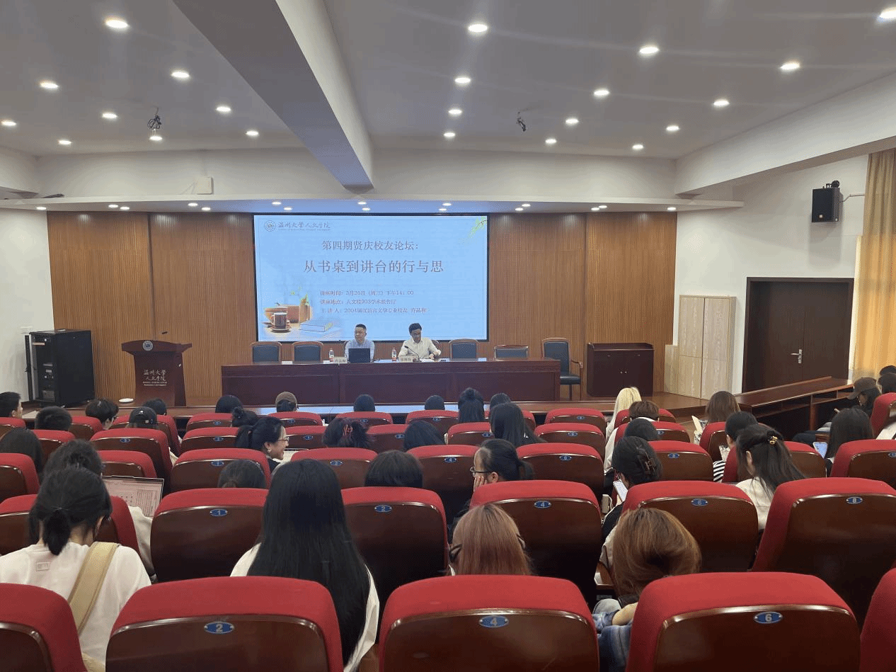 2025年3月26日下午,2004届汉语言文学专业校友许品和在人文楼203学术报告厅为免费色情片 学生带来了“从书桌到讲台的行与思”主题讲座。本次讲座由骆锤炼老师主持,100余位学生积极参与。