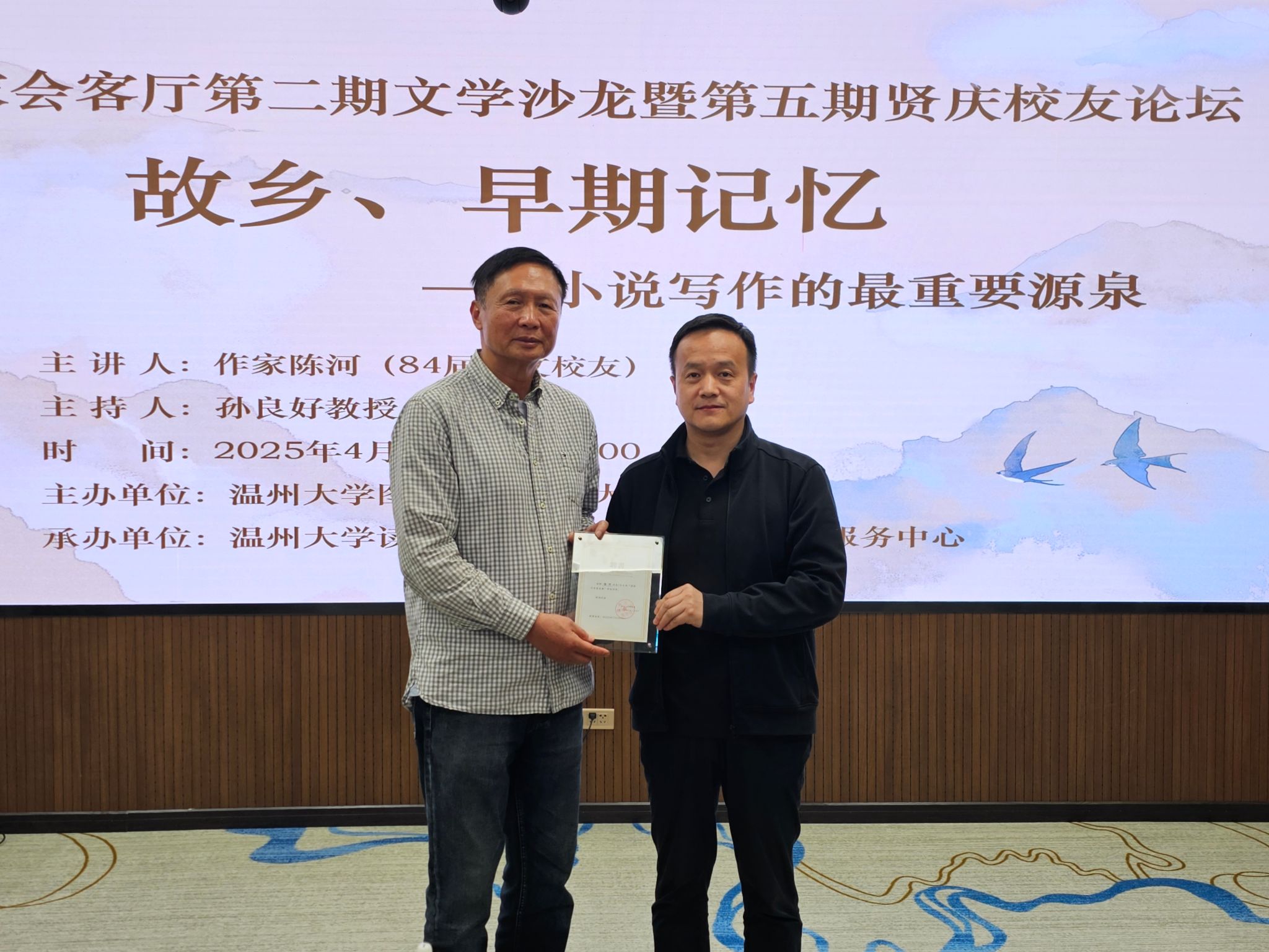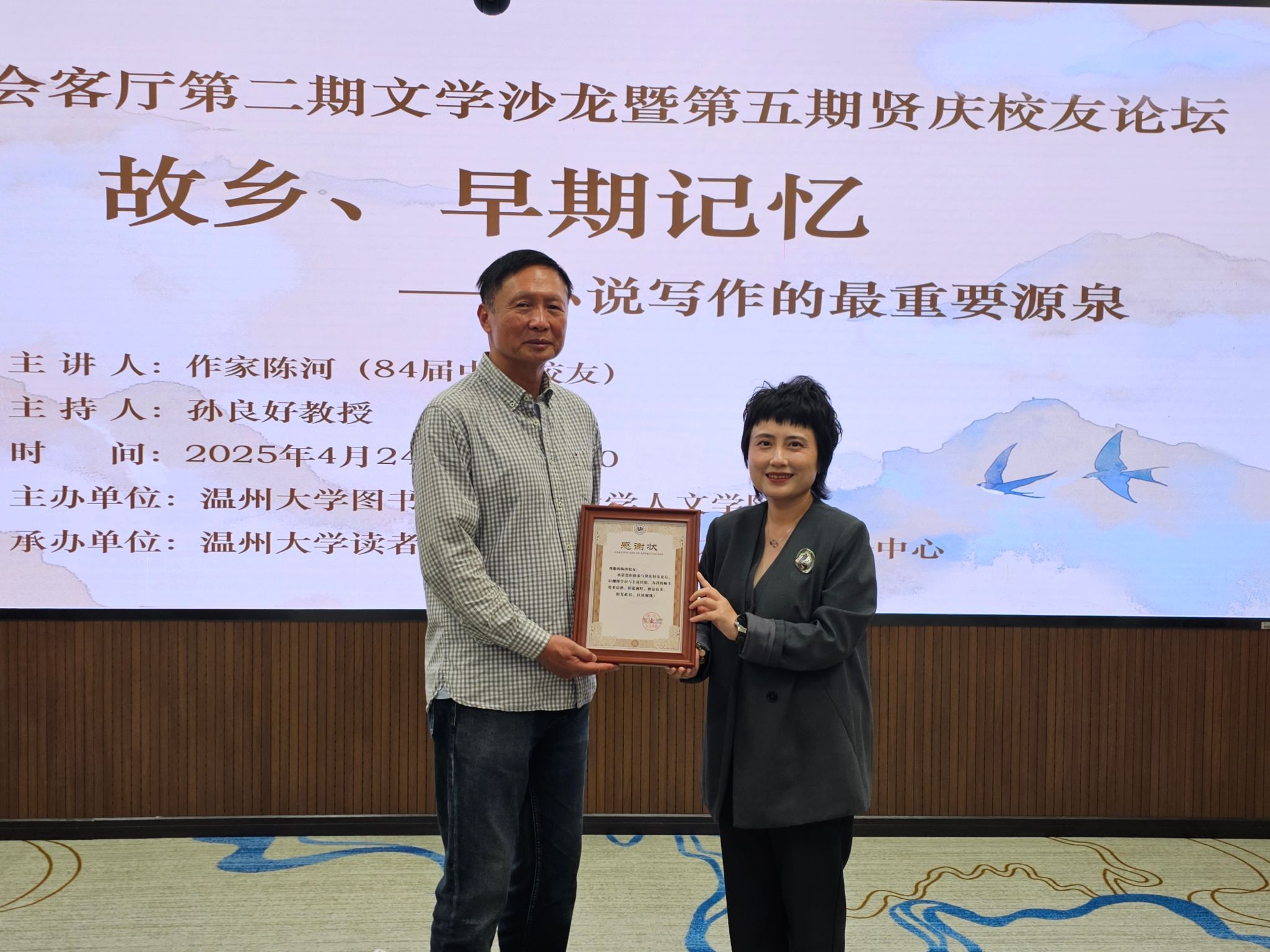 活动尾声,免费色情片 图书馆副馆长周志峰为陈河颁发“温籍作家会客厅”常驻作家聘书,免费色情片 党委副书记黄玮向其赠送“贤庆校友论坛”感谢状。陈河表示,未来将加强与母校的文学互动,助力青年学子探索创作之路。
