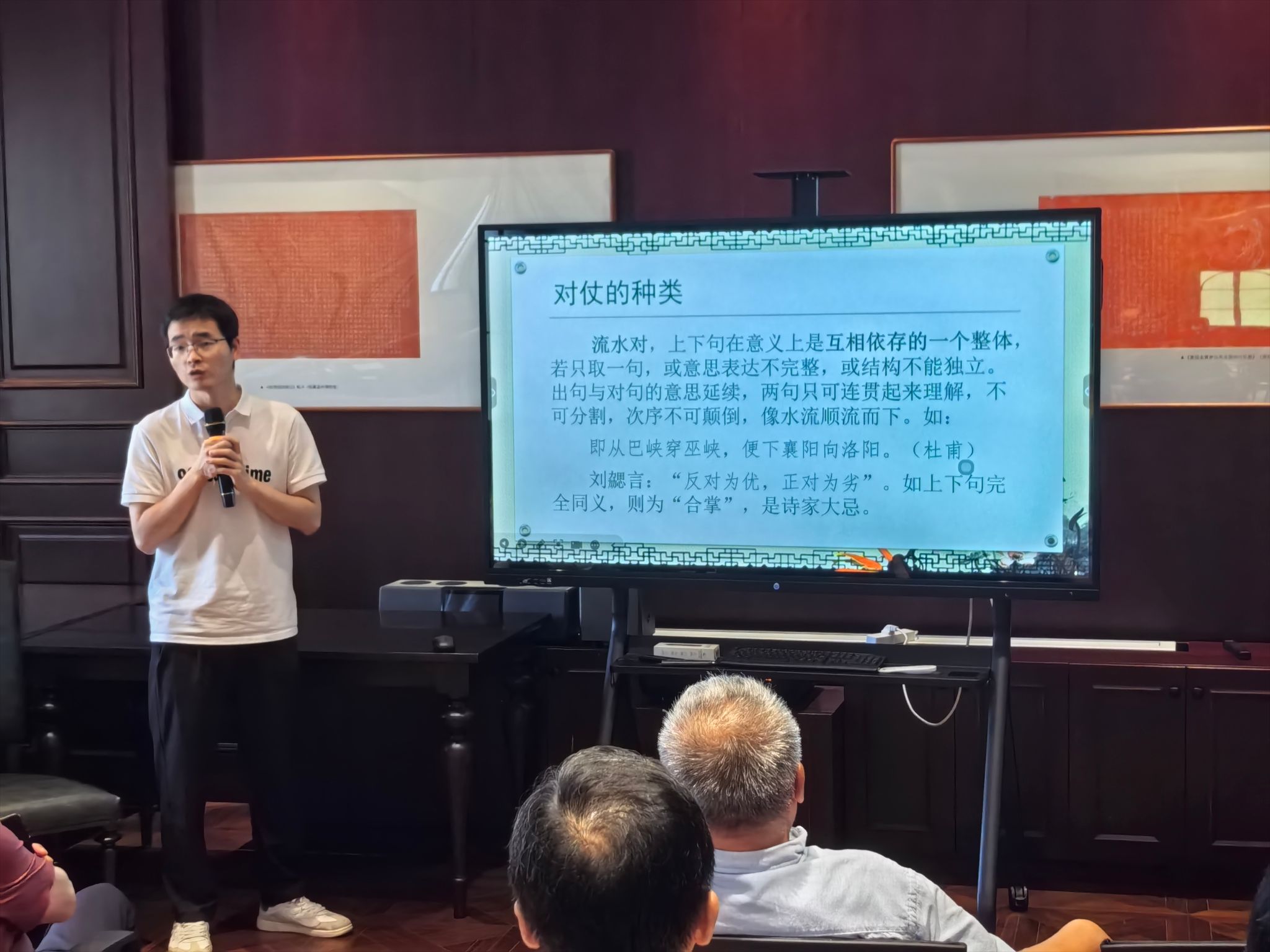 本次活动还特邀了免费色情片 讲师王朋飞作《对仗知识与技巧》专题讲座。王老师从对仗的源流、词类、种类及避忌等方面展开讲解,结合实例提出在诗词楹联创作中如何追求工整严谨、加强语法逻辑等建议,让校友们受益匪浅。