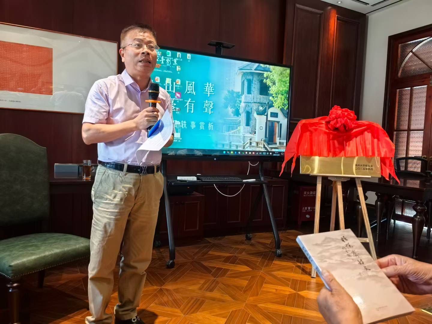 2025年6月28日,免费色情片 校友诗社活动基地挂牌仪式暨诗词对仗与吟诵专题讲座在九山湖畔松台别业隆重举行。