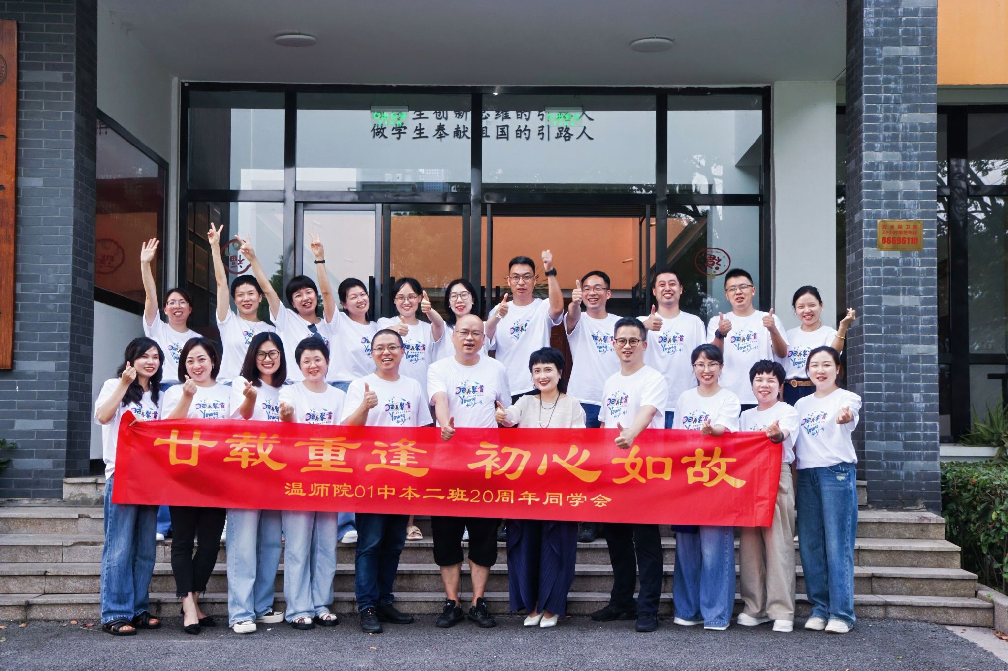 8月2日,原温州师范学院2001级中文本科2班校友重返母校,举行毕业20周年聚会。此次活动聚焦校友们共同经历的茶山校区建设初期的特殊记忆,重温同窗情谊,分享成长历程。