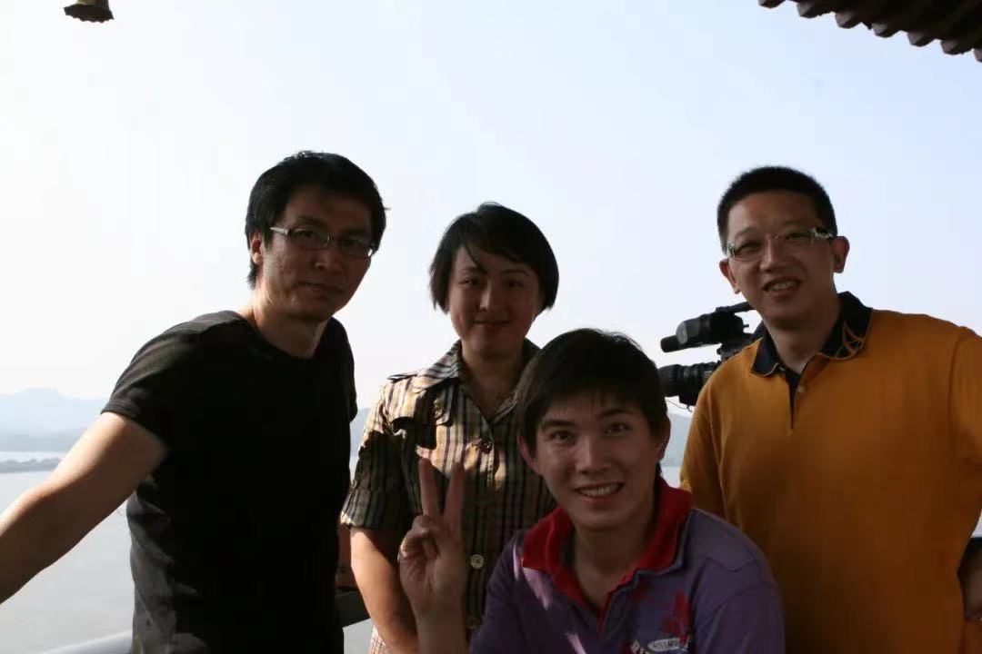 △1993年正月初一,拍摄“横渡江心”活动(后排扛摄像机者为陈振洲)