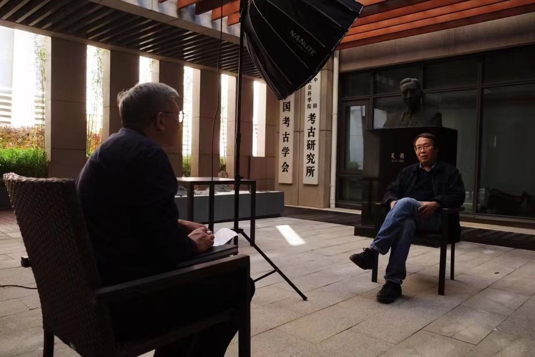 △ 纪录片《考古巨擘夏鼐》陈振洲(左)采访中国社会科学院考古研究所陈星灿(右)所长